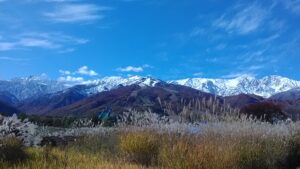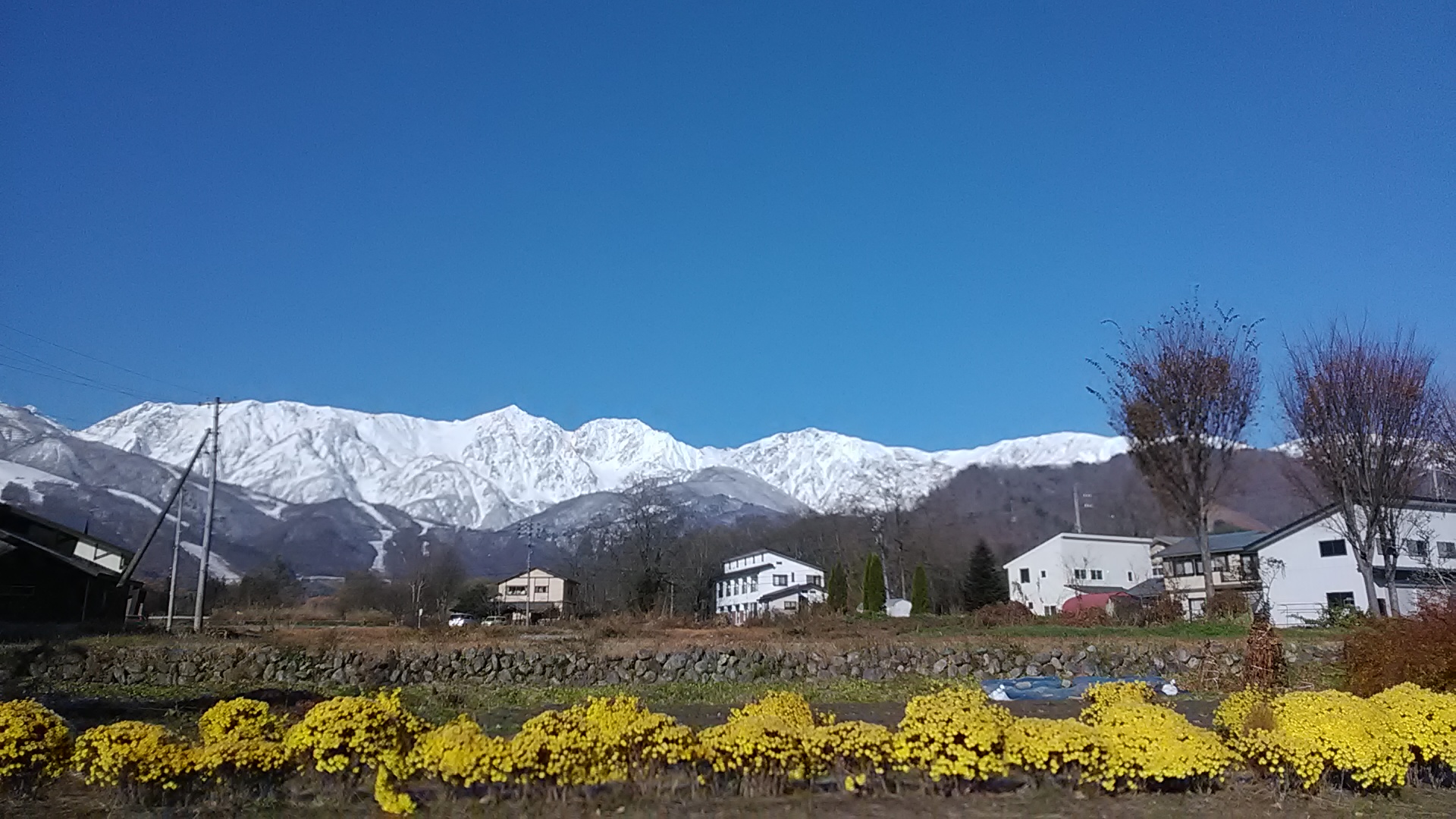 アルプスが鮮やかに見られる晴天も多くなり、こんなことは色とりどりの花々が咲き誇る春以来のことなので、普段は行かない散歩コースを久しぶりに歩いてみたら空も山も大地もキッラキラに輝いてました(写真 1・2)。