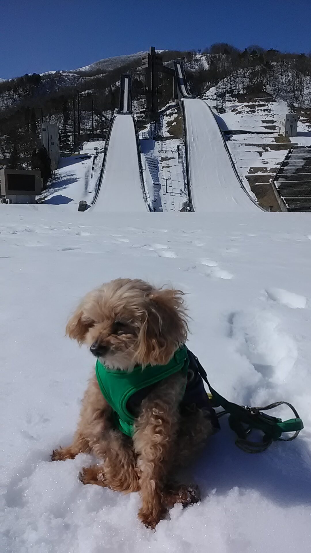 長野大会ではこの会場が大観衆で埋め尽くされましたが今となっては、雪原やつわものどもが夢の跡(写真 6・7)。