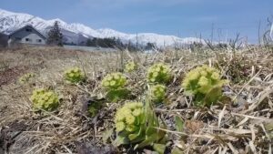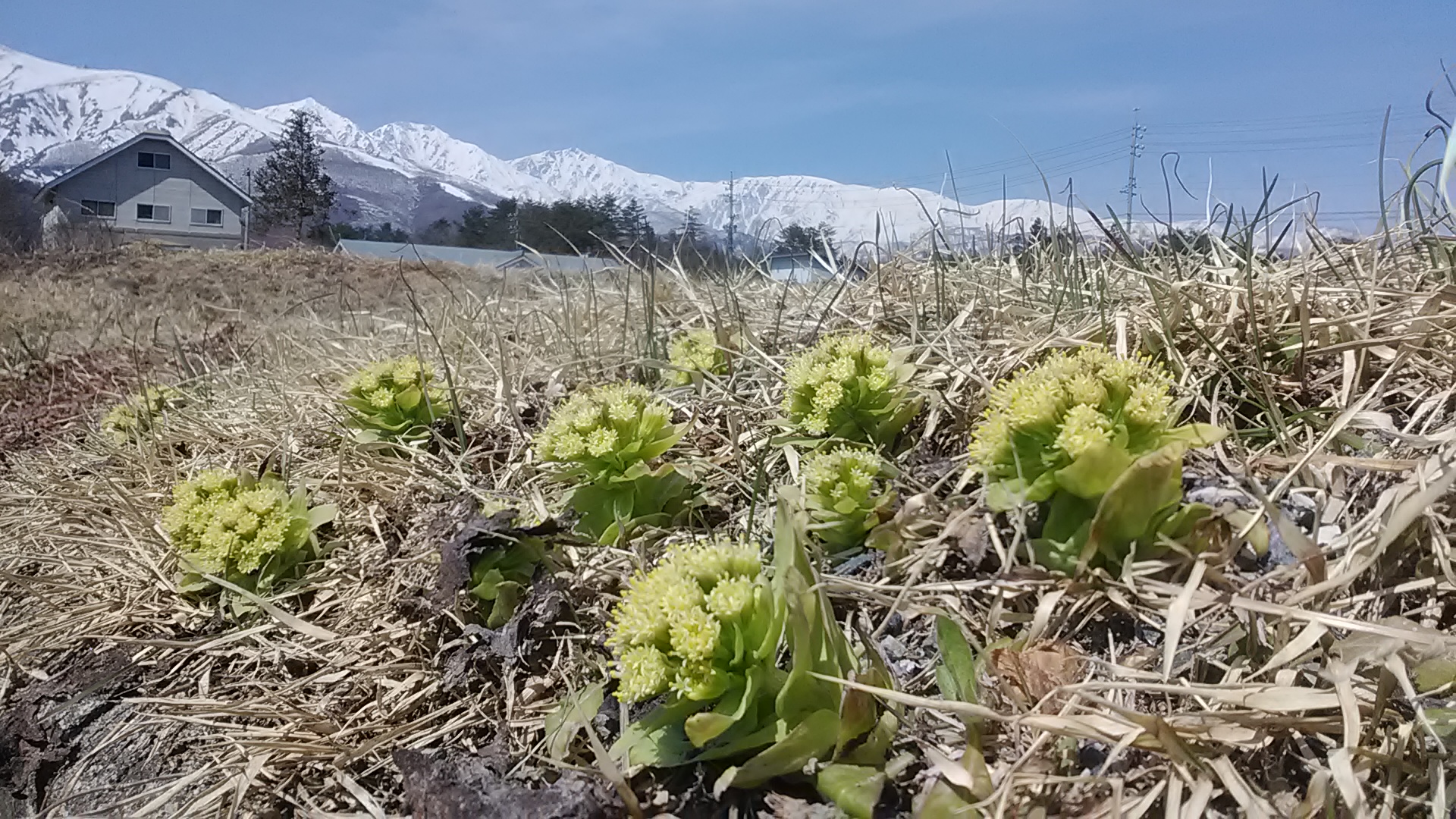 村は春になるとまずフキノトウと福寿草だらけになります。特にフキノトウはどこにでも顔を出しているからめずらしくもなく、だから誰も採らない。ほったらかしです。